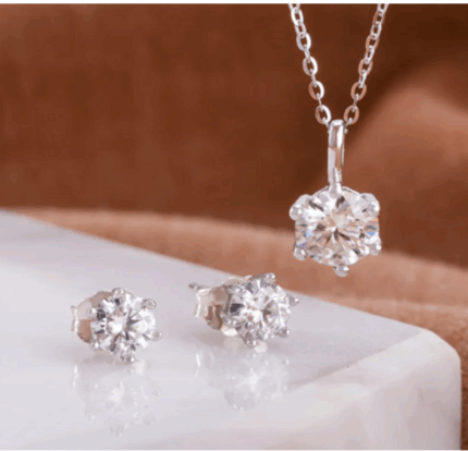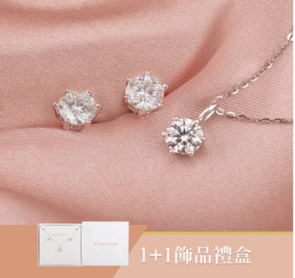 美爾朵 925純銀莫桑鑽項鍊耳環套組 MMS201-KMD122,閃耀之吻,六爪鑲嵌,精美禮盒, 項鍊銀 + 耳環銀