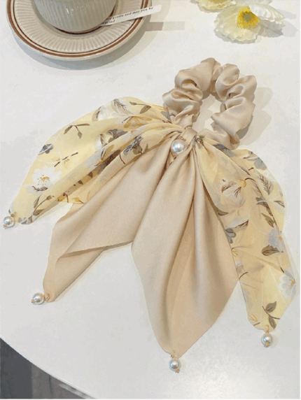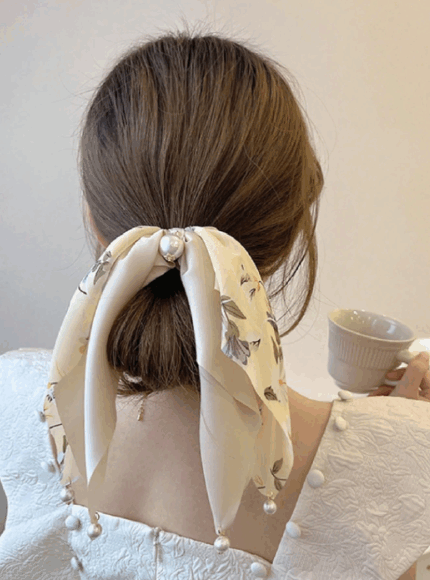 花卉珍珠絲巾髮帶|優雅氣質髮飾(3 件)